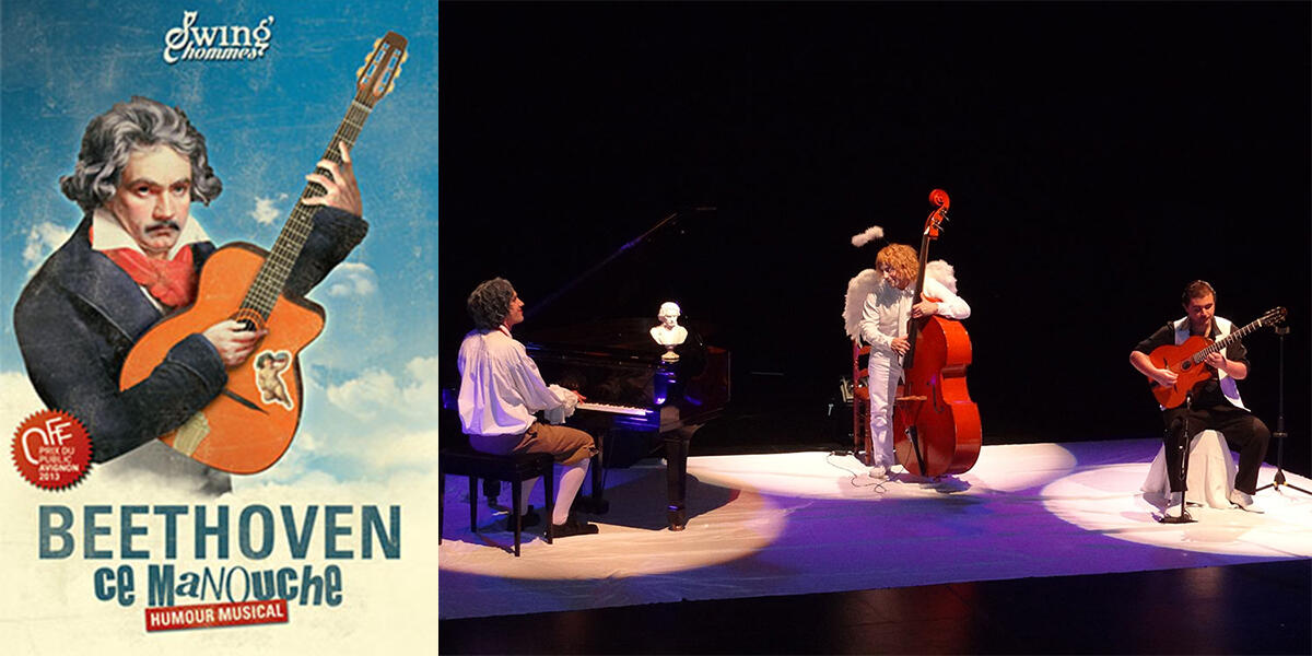 In heaven, Ludwig Van Beethoven and Django Reinhardt cheerfully loathe one another. But since they will be performing together at Saint Peter's impending birthday celebrations, they must rehearse under the supervision of the angel cellist. The deaf genius and the virtuoso manouche pool their considerable talents to create a mix of swing and humour.