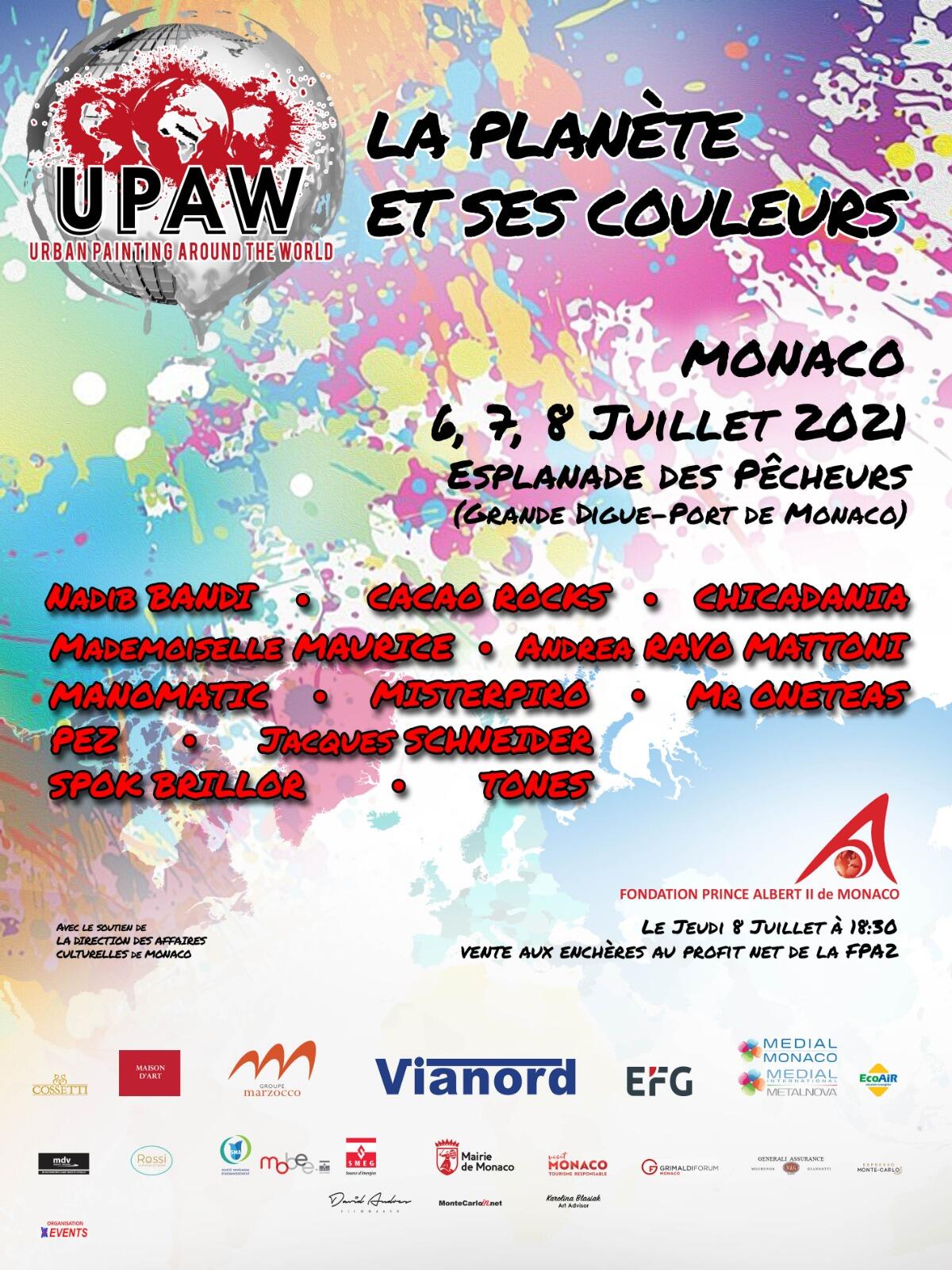 L'UPAW, come nel 2020, porterà gli artisti di calibro internazionale di street art nel Principato di Monaco, sempre a sostegno della Fondazione Prince Albert II di Monaco.