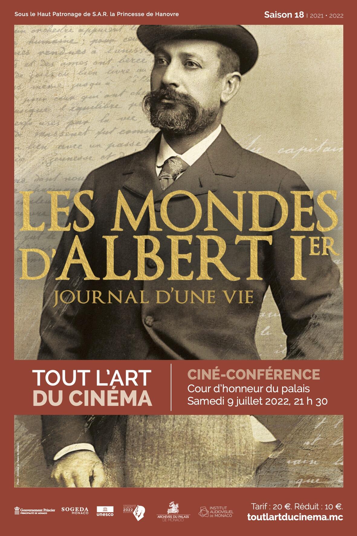 Tutta l'Arte del Cinema - Cine-conferenza, "I mondi di Alberto I. Diario di una vita". Una collaborazione tra gli Archivi del Palazzo di Monaco, l'Istituto audiovisivo di Monaco e il Comitato Alberto I -2022, per percorrere l'attività del principe Alberto I, sovrano, uomo d'azione, saggio, mecenate e umanista, esplorando i suoi territori prediletti- Principato di Monaco, Francia, Norvegia, Portogallo, Stati Uniti. Attingendo ad alcuni estratti del diario autobiografico che il Principe scrisse dal 1893 al 1922, questa cine-conferenza si avvarrà di numerose risorse fotografiche, grafiche e audio. Sotto l'Altro Patrocinio di S.A.R. la Principessa di Hannover.