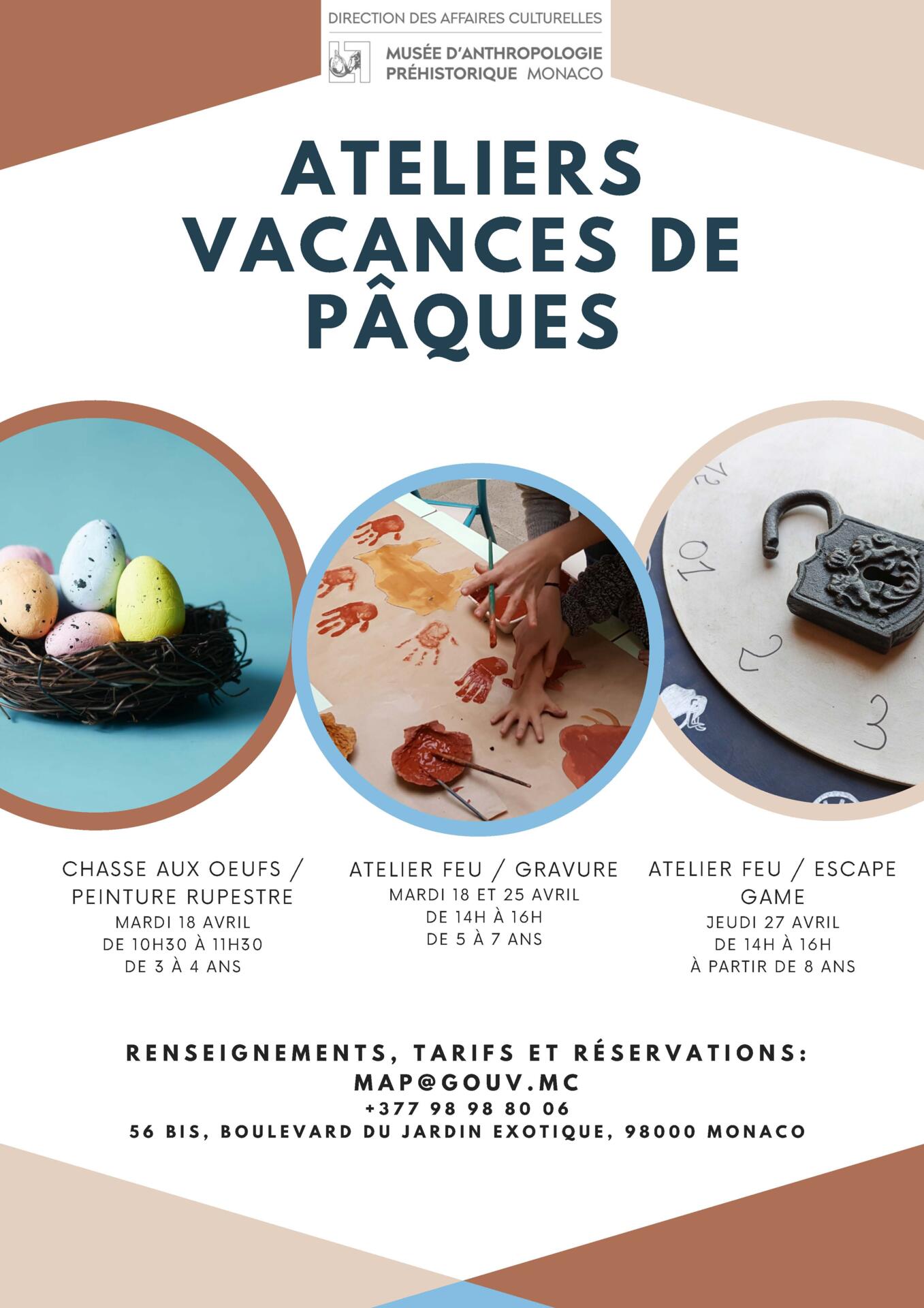 Atelier Feu : « Découverte du feu » En ces temps-là, comment, sans allumettes ni briquets, faisait-on du feu ? Durant cet atelier, vous apprendrez à allumer un feu par friction et par percussion à la manière des chasseurs-cueilleurs préhistoriques. Atelier gravures Préhistorique : Les gravures Rupestres de l’âge du bronze du Mont Bego « LA VALLÉE DES MERVEILLES » Atelier inspiré par les principales gravures découvertes du site du Mon Bego (Vallée des Merveilles), qui ont permis de définir plusieurs styles correspondant aux différentes époques de l'âge de bronze. La reproduction de ces gravures réalisées sur plaquette en plâtre à l'aide de silex par les participants sera une invitation à la découverte d'un pan de l’âge du bronze. De 5 à 7 ans.