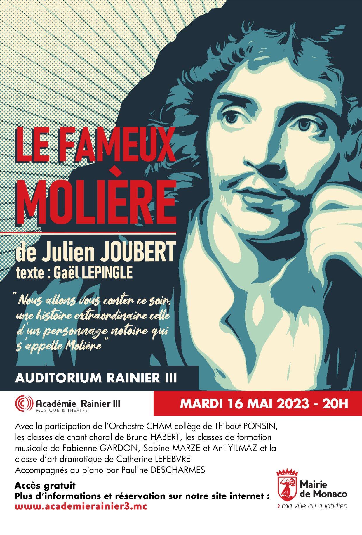 "Questa sera vi racconteremo una storia straordinaria su un famoso personaggio chiamato Molière. Con queste parole inizia il nostro racconto musicale. Un'occasione per addentrarsi nell'arte e nella vita del più famoso drammaturgo francese di cui si sono appena celebrati i 400 anni dalla nascita. Racconto musicale di Julien JOUBERT, Testo: Gaël LEPINGLE.
