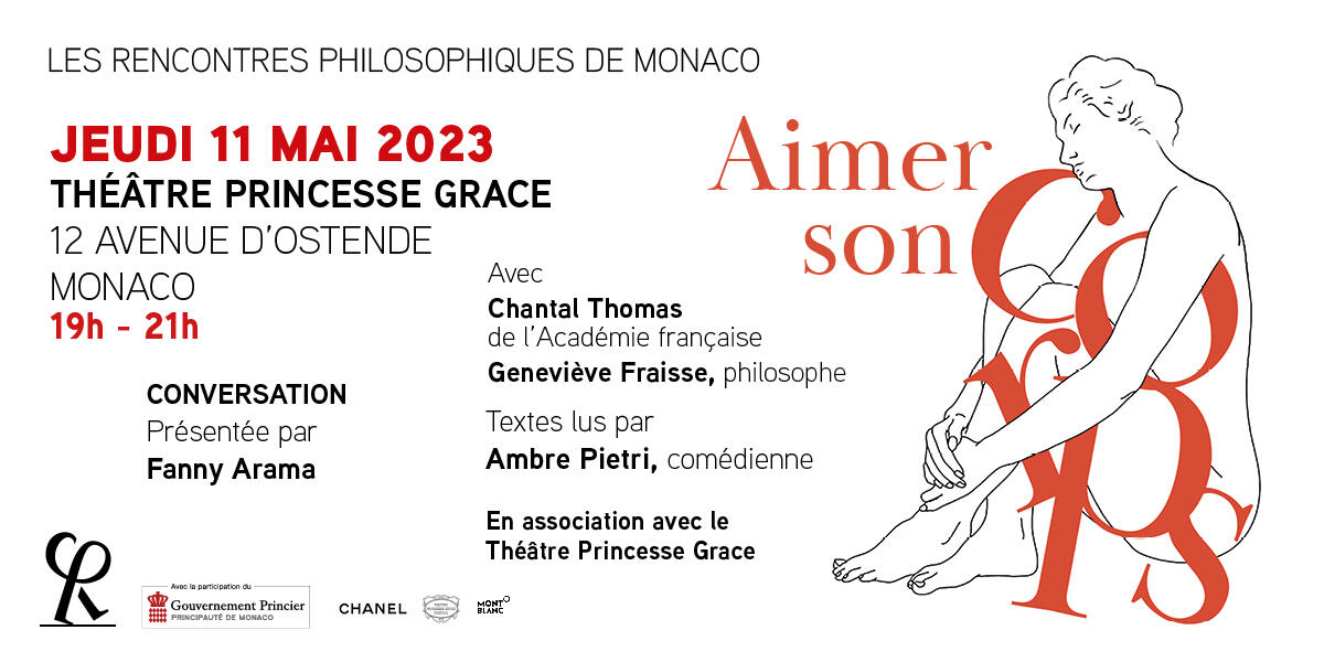 Come è possibile amare il proprio corpo in una società che ha a lungo cercato di nascondere e modificare il corpo delle donne? Come parlare del corpo quando la sua rappresentazione è ancora vista in un prisma normativo essenzialmente teso a plasmare corpi efficienti e utili? Gli estratti letti da Ambre Pietri durante questa serata si concentreranno sul corpo, al quale le opere di Chantal Thomas e Geneviève Fraisse assegnano un posto predominante. L'incontro è presentato da Fanny Arama, studiosa di letteratura francese del XIX secolo. Organizzato dai Rencontres Philosophiques de Monaco, in associazione con il Théâtre Princesse Grace.