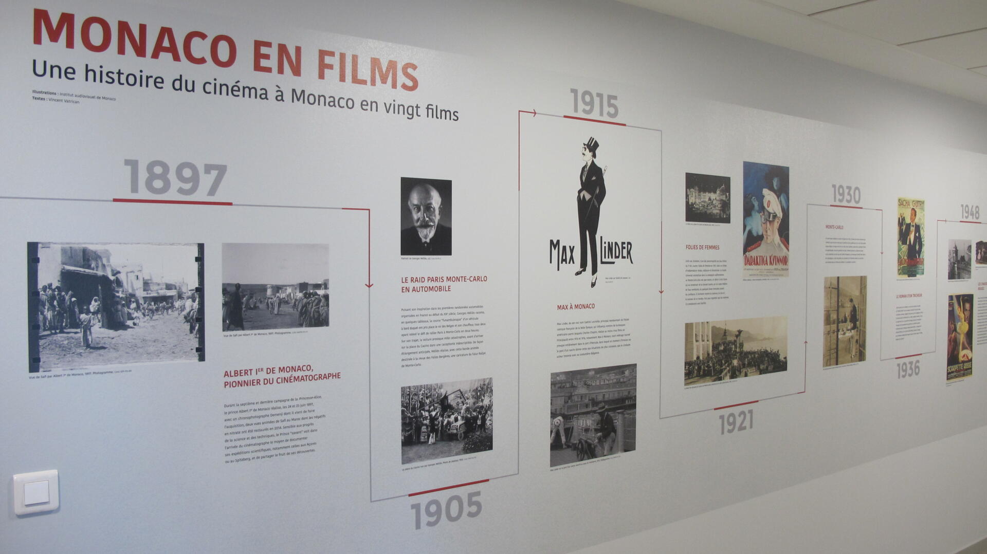 La frise "Histoire du cinéma à Monaco" expose une sélection de vingt films tournés à Monaco pour le grand écran, présentés avec des archives issues des collections de l’Institut.