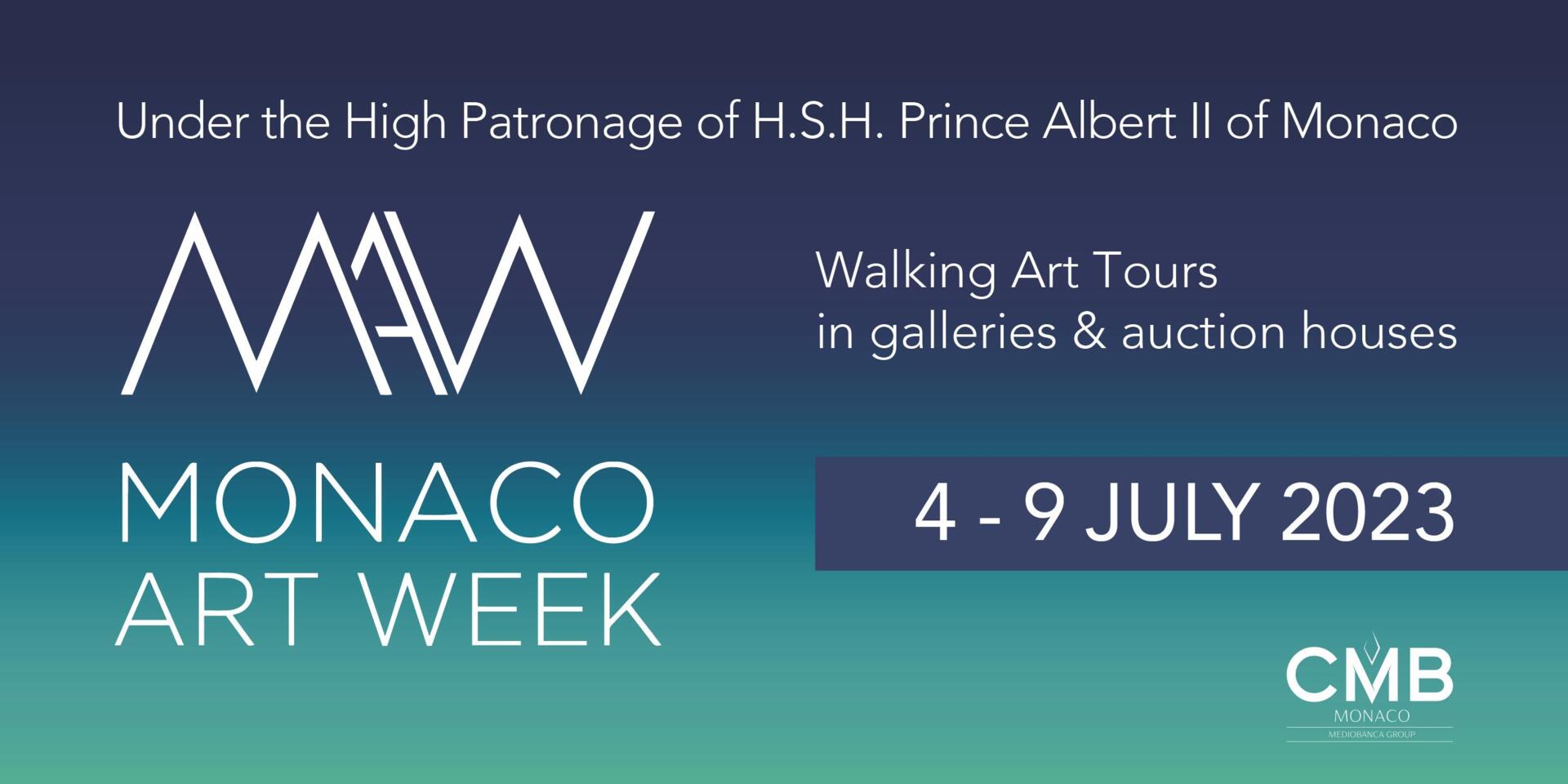 La Monaco Art Week, sotto l'Alto Patronato di S.A.S. il Principe Alberto II di Monaco, è giunta alla sua 5° edizione e propone un nuovo percorso artistico nel Principato di Monaco. Gallerie e case d'asta si riuniranno per l'occasione con mostre ed eventi artistici, offrendo un programma poliedrico di arte moderna, arte contemporanea e creazioni di alta gioielleria. La Monaco Art Week 2023 riunisce 16 partecipanti distribuiti tra i quartieri di Monte-Carlo e Larvotto: Artcurial; Boghossian; Christie’s; G&M Design; Hauser & Wirth; HOFA; Kamil Art Gallery; Lebreton; Elisabeth Lillo-Renner; M.-F. Toninelli Art Moderne; Opera Gallery; Galerie Adriano Ribolzi; Sotheby’s; Teos Gallery Monte-Carlo; Wannenes Art Contact; et Ward Moretti at Moretti Fine Art.