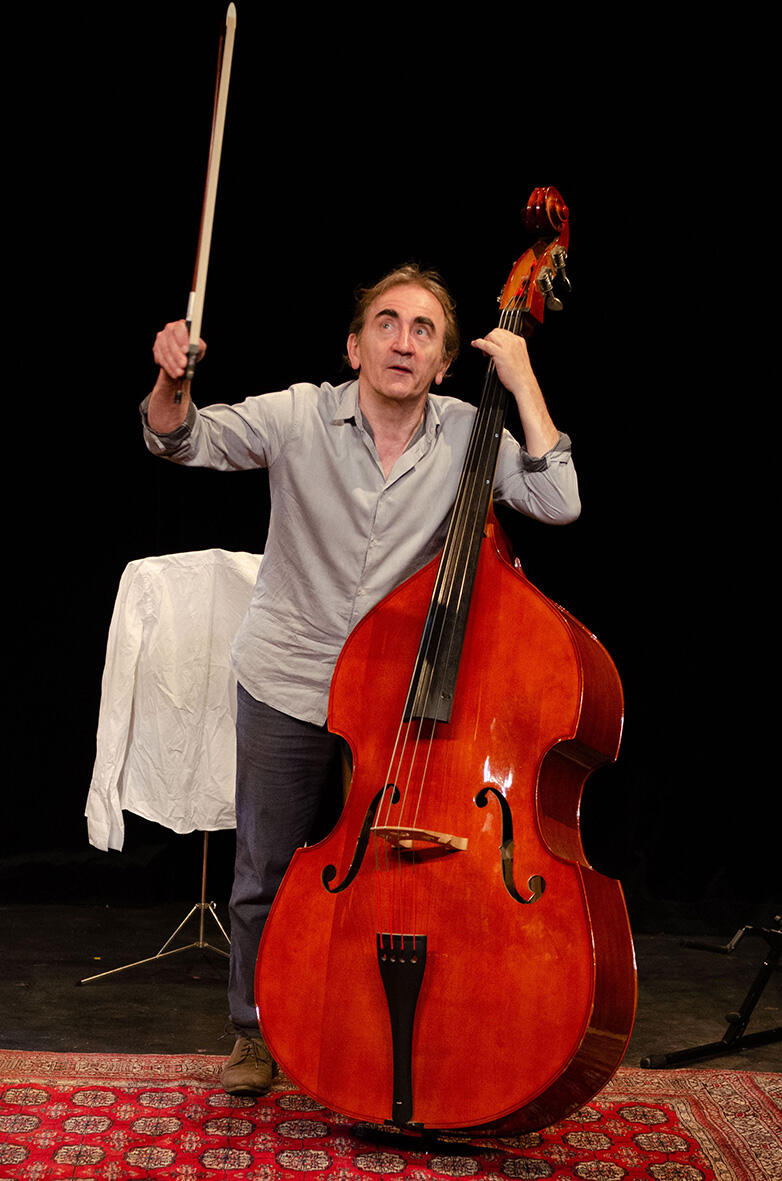Capolavoro di stridente umorismo, "La Contrebasse" è il suggestivo ritratto di un essere umano nella sua grandezza e nella sua piccolezza, alle prese con la macchina sociale qui rappresentata dalla gerarchia dell'orchestra, legata al suo strumento. da un rapporto intimo fatto di amore e odio. È questa relazione unica che, attraverso la musica, riesce a connetterlo al mondo.