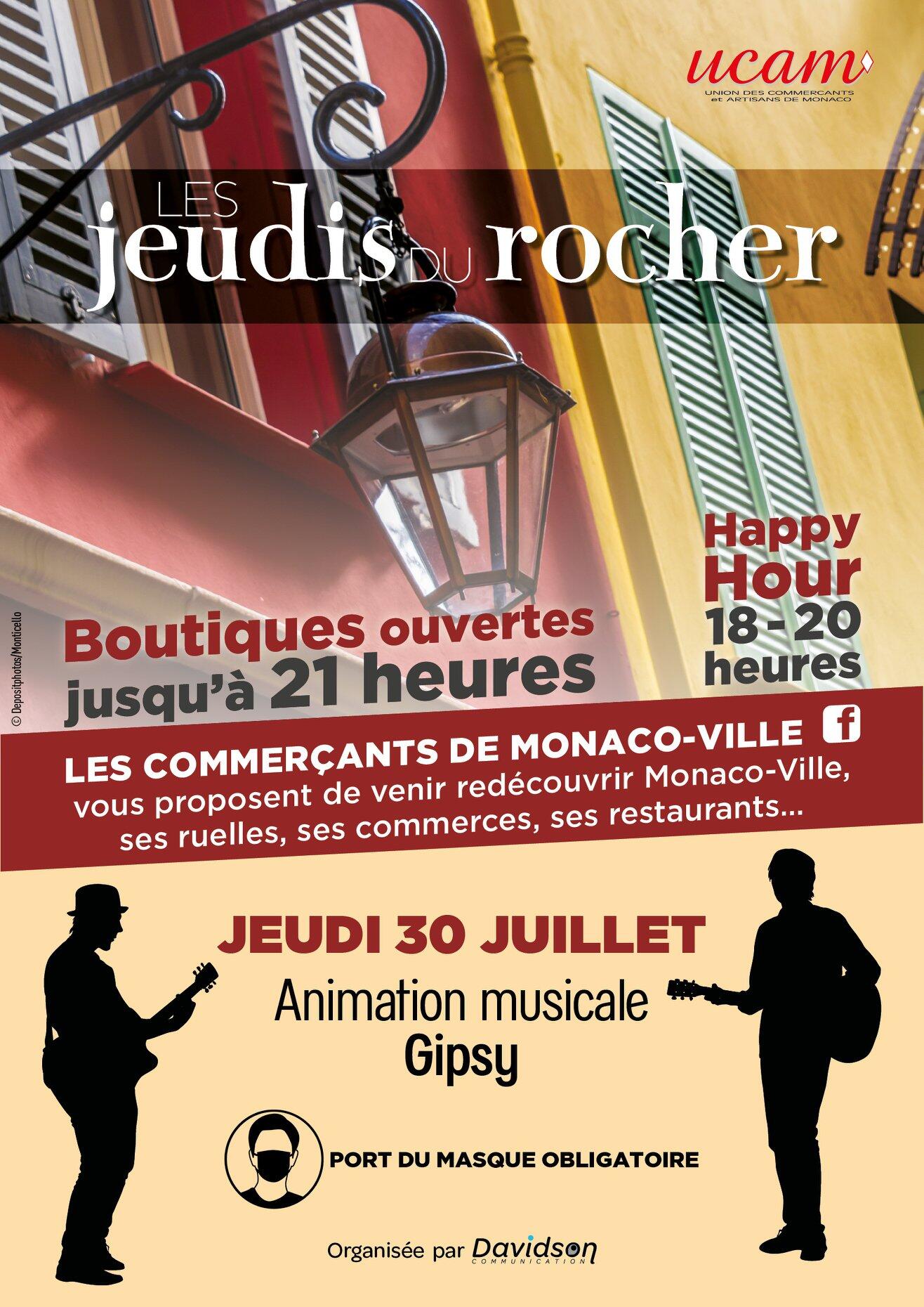 I commercianti di Monaco Ville vi danno appuntamento per i "Giovedì della Rocca" dalle 18 alle 21, apertura delle boutique fino alle 21 e happy hour nei ristoranti. Ci sarà un accompagnamento musicale ad opera di un trio di musicisti dell'Orchestra dei Carabinieri del Principe con, in programma, motivi jazz, bossa nova e samba. Pensate a prenotare il vostro tavolo per la cena!