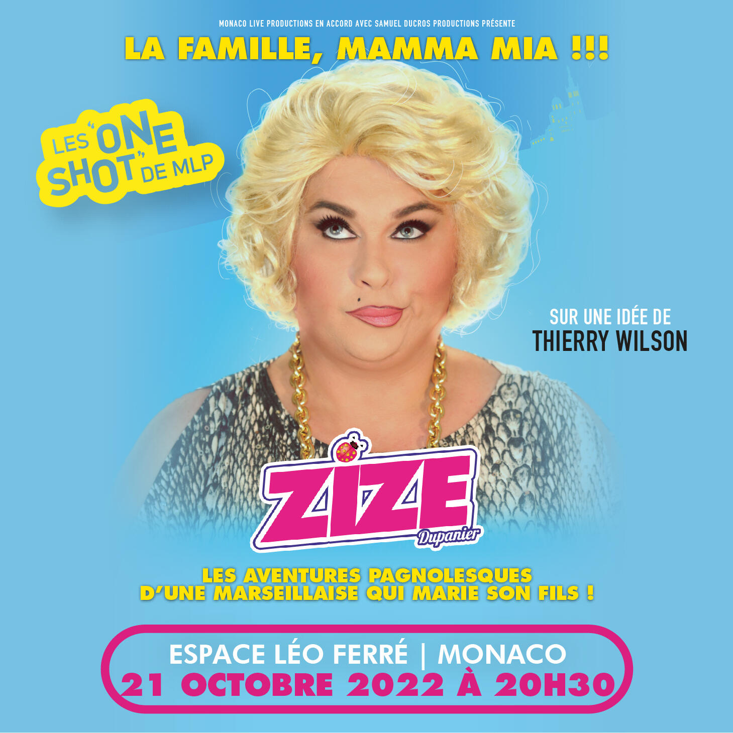 Zize la marsigliese, totalmente strampalata, un po' "cagole" e un po' borghese, sta per ammogliare suo figlio. Autoritaria, invadente, come un bulldozer in un campo di tulipani, ha in mente di fare del suo meglio per trasformare questa giornata nel "matrimonio del secolo". Spettacolo a cura di Monaco Live Productions.