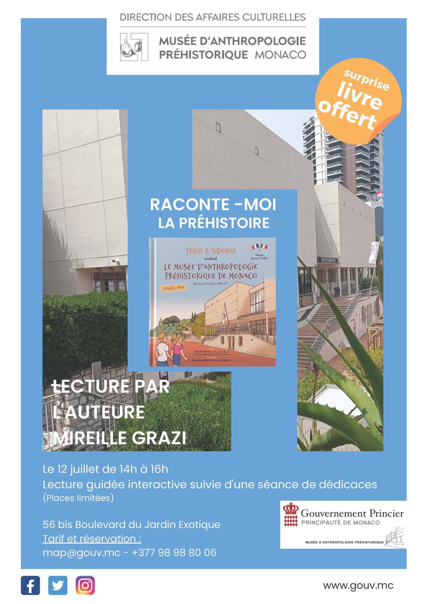 "Théo et Sidonie visitano il Museo di Antropologia preistorica d'Anthropologie, lettura guidata interattiva dell'autrice Mireille Grazi, seguita dalla firma del libro. Posti limitati. Per bambini a partire dai 4 anni.