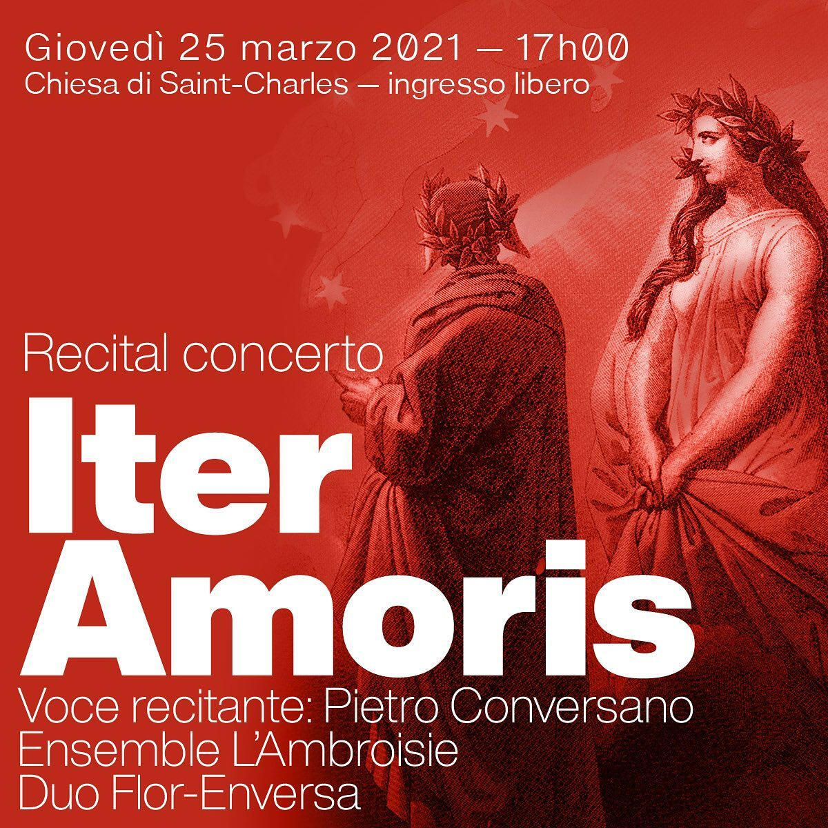 "Iter Amoris", a recital by the ensemble L'Ambroisie conducted by Marie-Claire Bert with the duo Flor-Enversa and Pietro Conversano, narrator, organised by the Societa Dante Alighieri